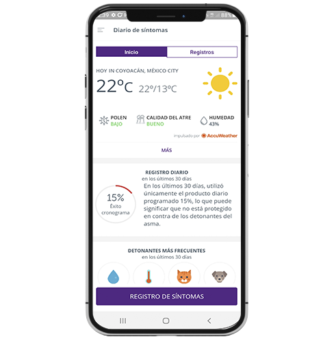 Contamos con un sistema avalado por El Colegio Mexicano de Neumólogos Pediatras el cuál incluye un sensor que monitorea el uso correcto de los inhaladores conectándolo a nuestra APP para tener el control en cada paso del proceso.