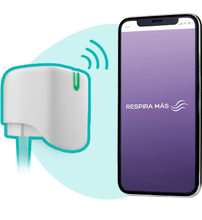 El sistema de Respira Más ® cuenta con un dispositivo electrónico que se coloca al inhalador permitiendo el análisis de uso y el resguardo de toda la información en el APP dentro del celular para poder ser compartida con el médico tratante y
